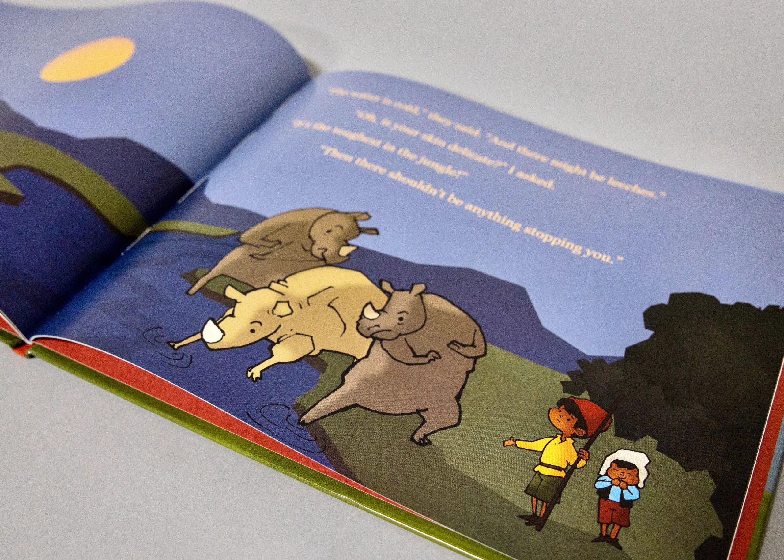 Based on real people I met in the Nepali jungle, Rhino Trouble shares the adventures of two young boys who square off against a pack of rowdy rhinos.